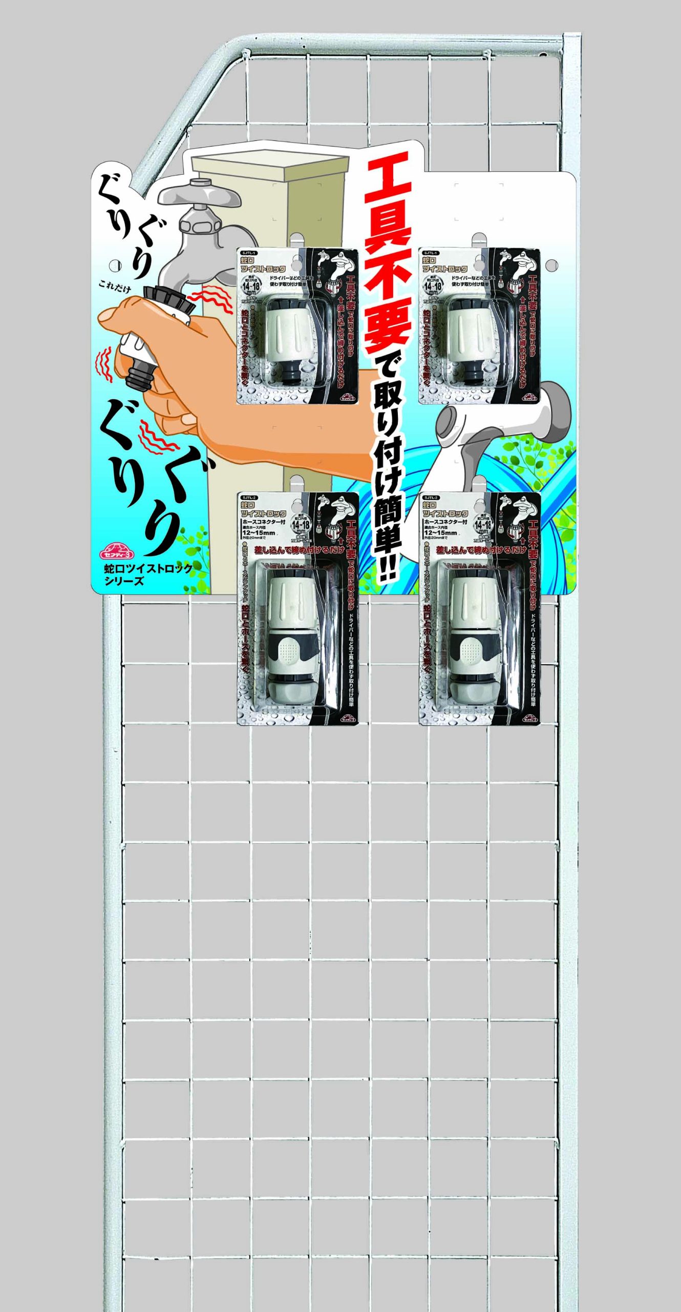 店頭での売場づくりにおいて「省スペースでも目立たせたい」というお悩みを解決! 藤原産業様の新商品「蛇口ツイストロック」シリーズの売場展開例をもとに、 サイドネットを活用した効果的な売場づくりをご紹介します。